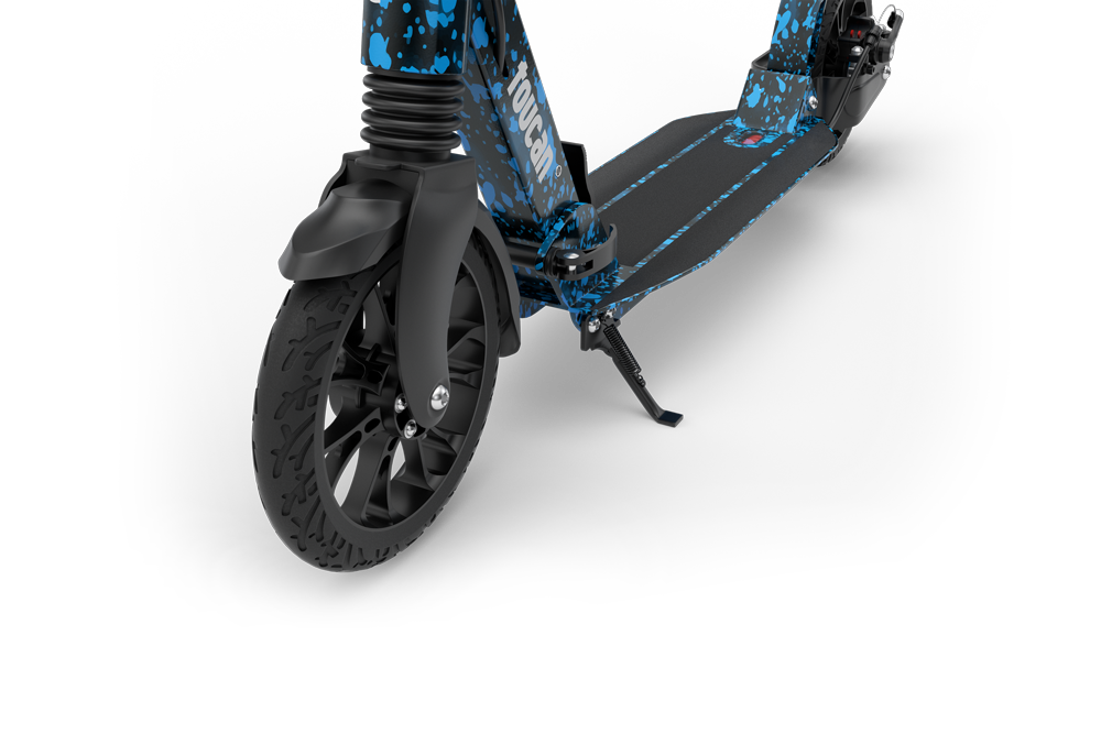 Large wheels on a toucan will make the ride much smoother, vibrations and bumps will be absorbed due to the PU material around the wheels. An added bonus of PU wheels is they are puncture proof.
