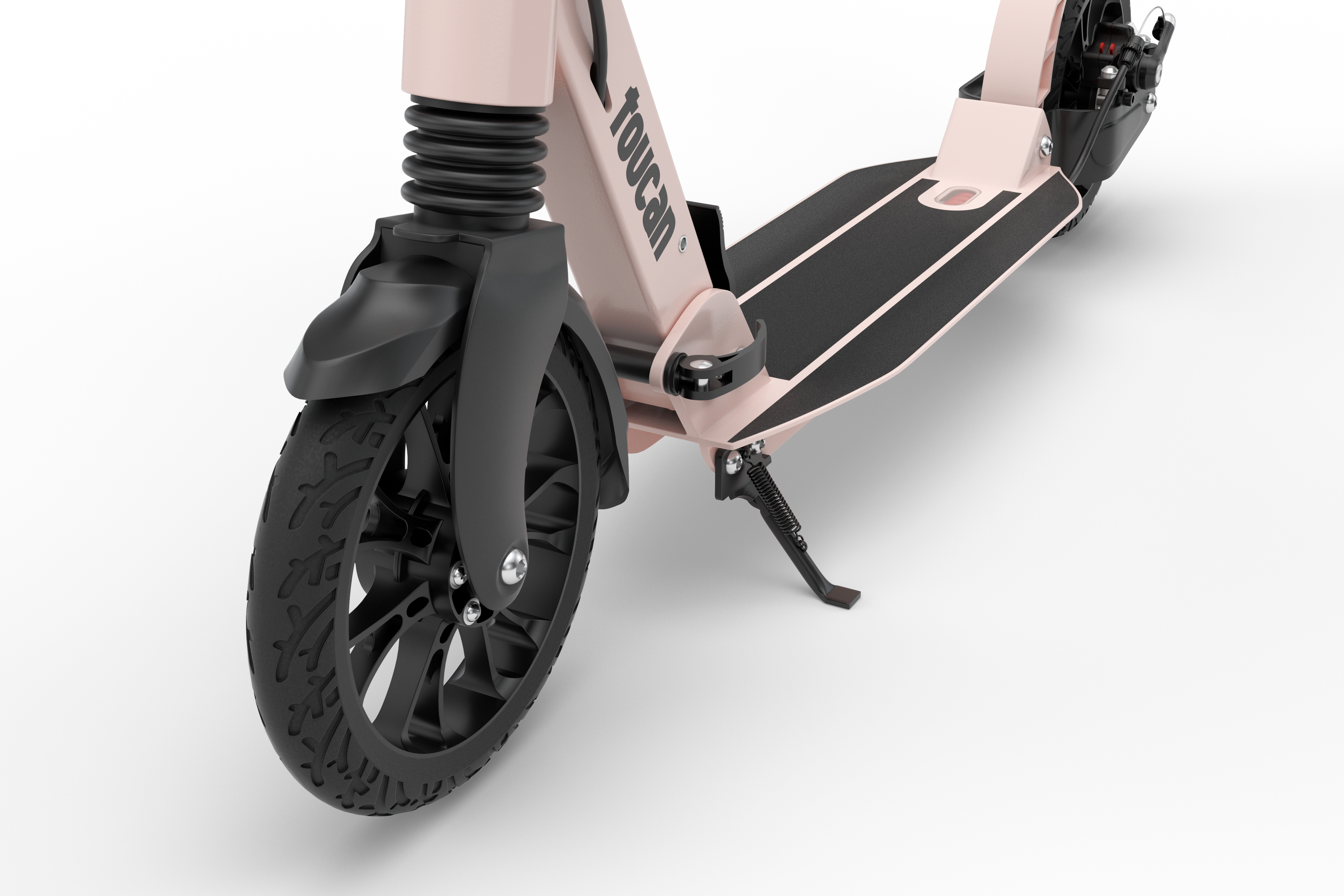 Large wheels on a toucan will make the ride much smoother, vibrations and bumps will be absorbed due to the PU material around the wheels. An added bonus of PU wheels is they are puncture proof.