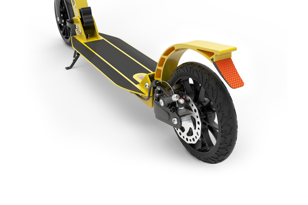 The scooter is equipped with fenders on both front and back wheels, this is a must when commuting to avoid any backsplash on your outfit.