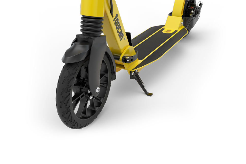 Large wheels on a toucan will make the ride much smoother, vibrations and bumps will be absorbed due to the PU material around the wheels. An added bonus of PU wheels is they are puncture proof.
